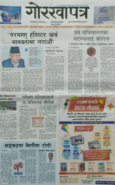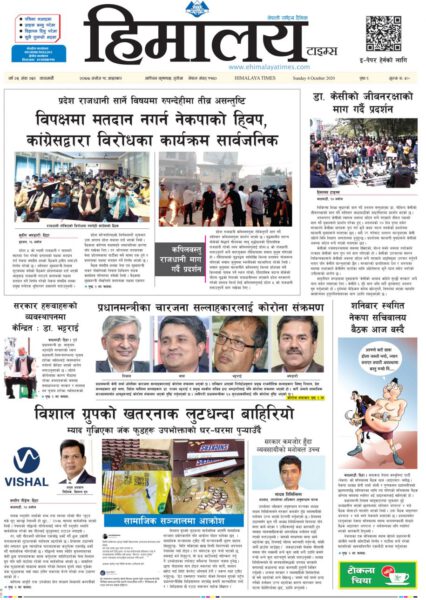 Breaking Newsपत्रपत्रिकाबाट के के छापिए आजका पत्रपत्रिकामा (अगाडि पेज हेर्नुहोस) By मनासलु - आइतवार, असाेज १८, २०७७ प्रकाशित मिति : 0 223