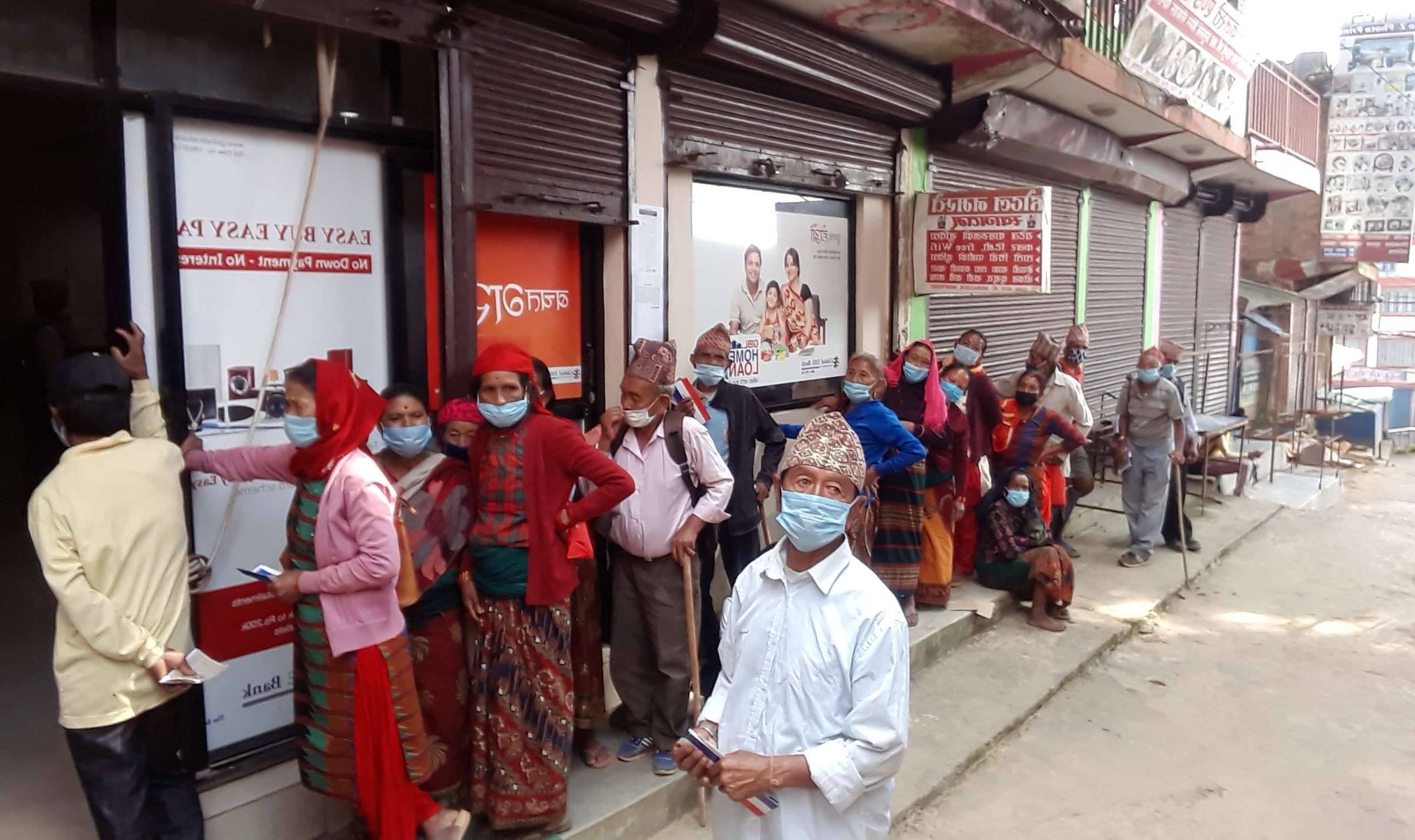 कार्तिक ५, गाेरखा । शहिद लखन गाउँपालिका भित्र रहेका ९ वडाका असहाय, जेष्ठ नागरिक लगायतका सामाजिक सुरक्षा रकम लिन याेग्य नागरिकहरुले बैँकबाट सामाजिक सुरक्षा भत्ता लिएका छन् ।
