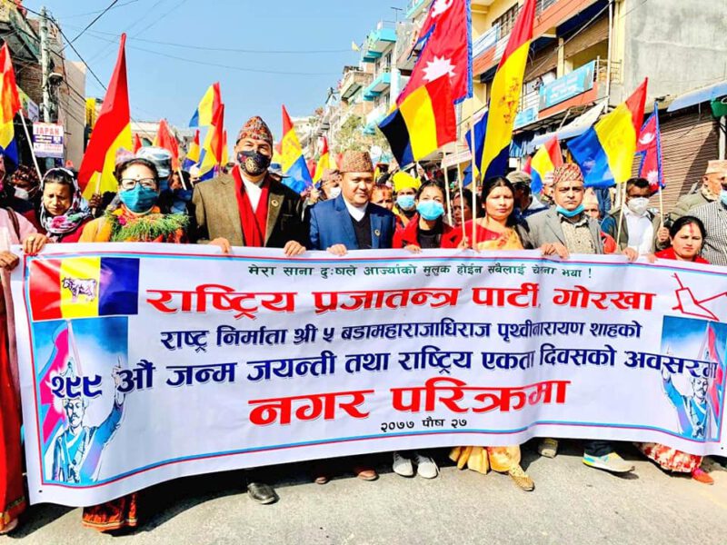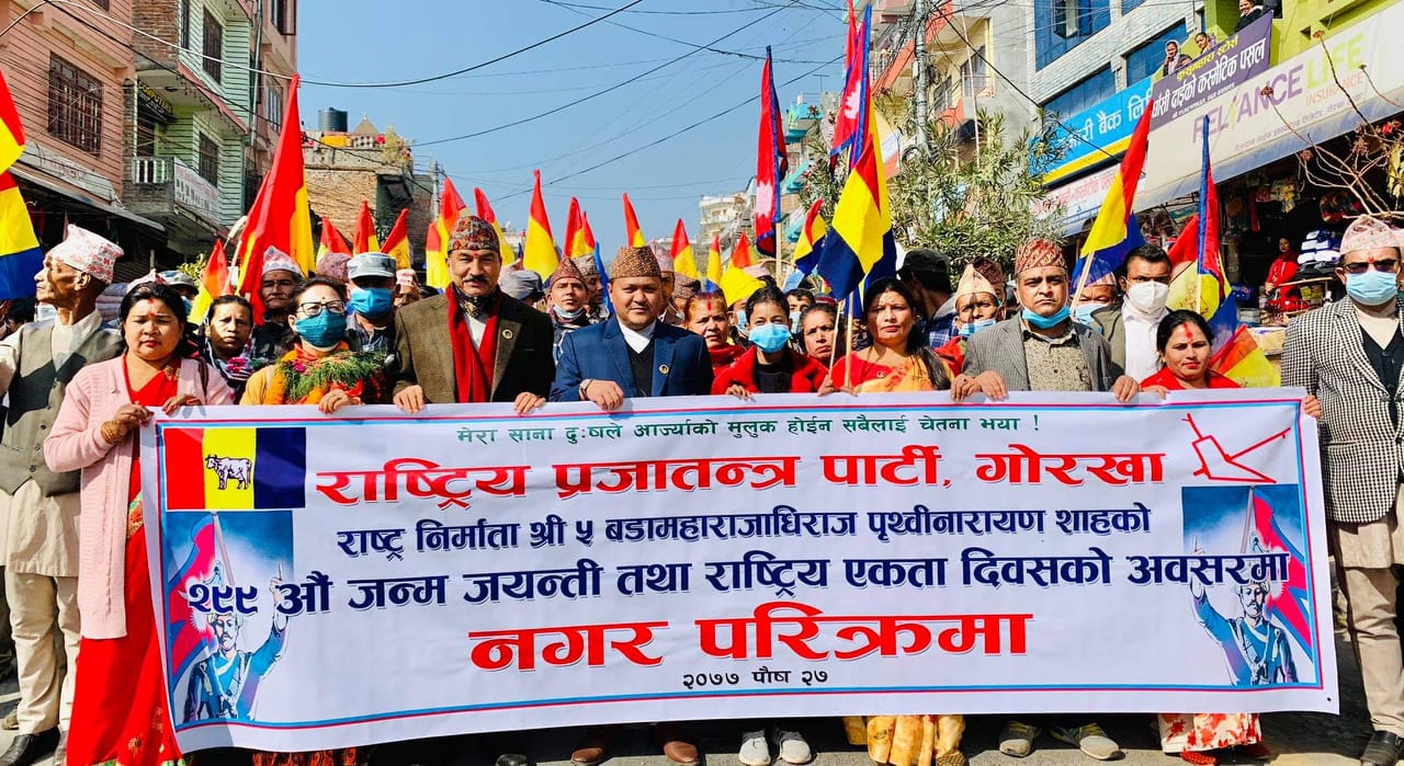 उनले नेपाली नाेटमा एकताका प्रतिक पृथ्वी नारायण शाहकाे तस्वीर राखेर नाेट प्रकाशन गर्न समेत सुझाव दिएका छन् । कार्यक्रममा अघि विभिन्न प्रकारका झाकी सहित राप्रपाका नेता तथा कार्यकर्ताहरुले बजार परिक्रमा गरेका थिए ।