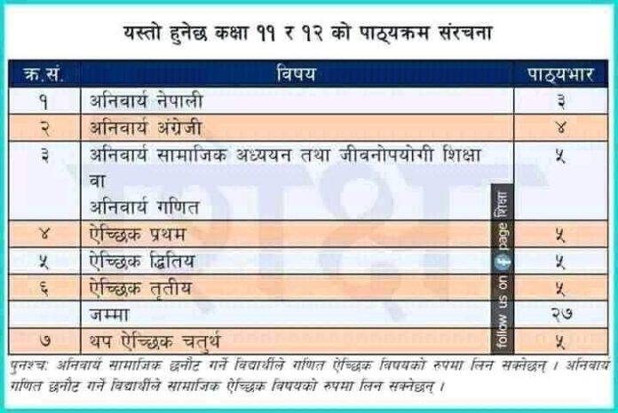 पाेखरा १६ माघ । कक्षा ११ र १२ को पाठ्यक्रममा गणित विषय अनिवार्य समूहमा परेको छ । तर विद्यार्थीले गणित र सामाजिक शिक्षा तथा जीवनोपयोगी मध्ये एउटा विषय रोज्न पाउने भएका छन् ।