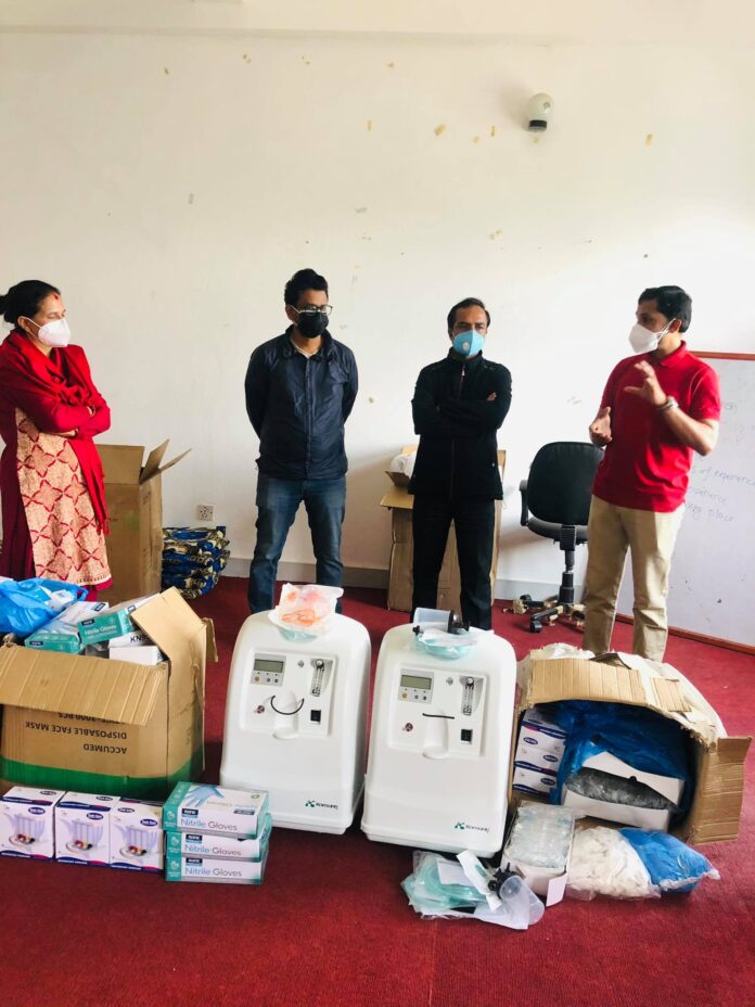 कोरोना महामारीका कारण देशव्यापि रुपमा अक्सिजन लगायत स्वास्थ सामाग्री अभाब भै रहेको बेला रोटरी क्लप अफ नेपाल स्विजरन्यान्डद्वारा अक्सिजन कन्सेन्टेटर २ थान , एन्टिजिन कीट १०० पिस लगायत स्वास्थ सामाग्रीहरु प्रदान गरेकाे हाे ।