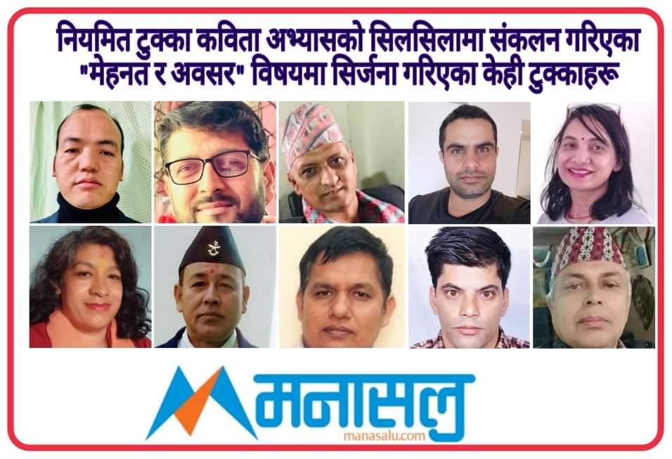 टुक्का कविताकाे नियमित अभ्यासकाे सिलसिलामा संकलन गरिएका “मेहनत र अवसर” विषयमा सिर्जना गरिएका केही टुक्काहरू