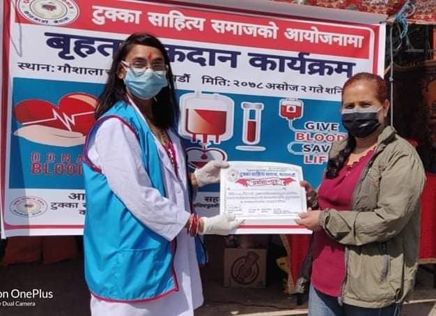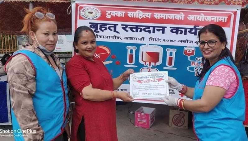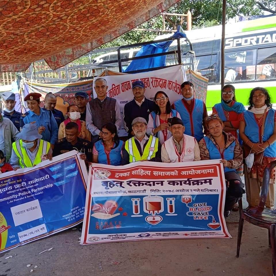 काठमाडाैं । टुक्का साहित्य समाज, काठमाडाैं द्वारा आयोजित वृहद् रक्तदान तथा टुक्का वाचनकार्यक्रम काठमाडाैंकाे गाैशालामा सम्पन्न भएकाे छ ।