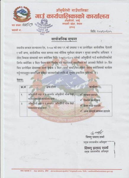 कार्यपालिका बैठकबाट निर्णय गरी स्थानीय मठमन्दीरमा पर्व लाग्ने भएकाले विदा प्रदान गरिएकाे पालिकाले जनाएकाे छ । आँवुखैरैनी गाउँपालिकाकाे आँधिमुल क्षेत्रमा एकादशी मेला लाग्ने गर्दछ । यस क्षेत्रमा मेला भर्नका लागि धेरै टाढाबाट मानिसहरु आउने गर्दछन् ।