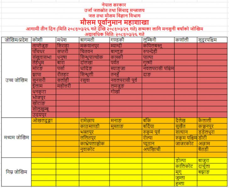 यी हुन् जोखिममा परेका जिल्ला